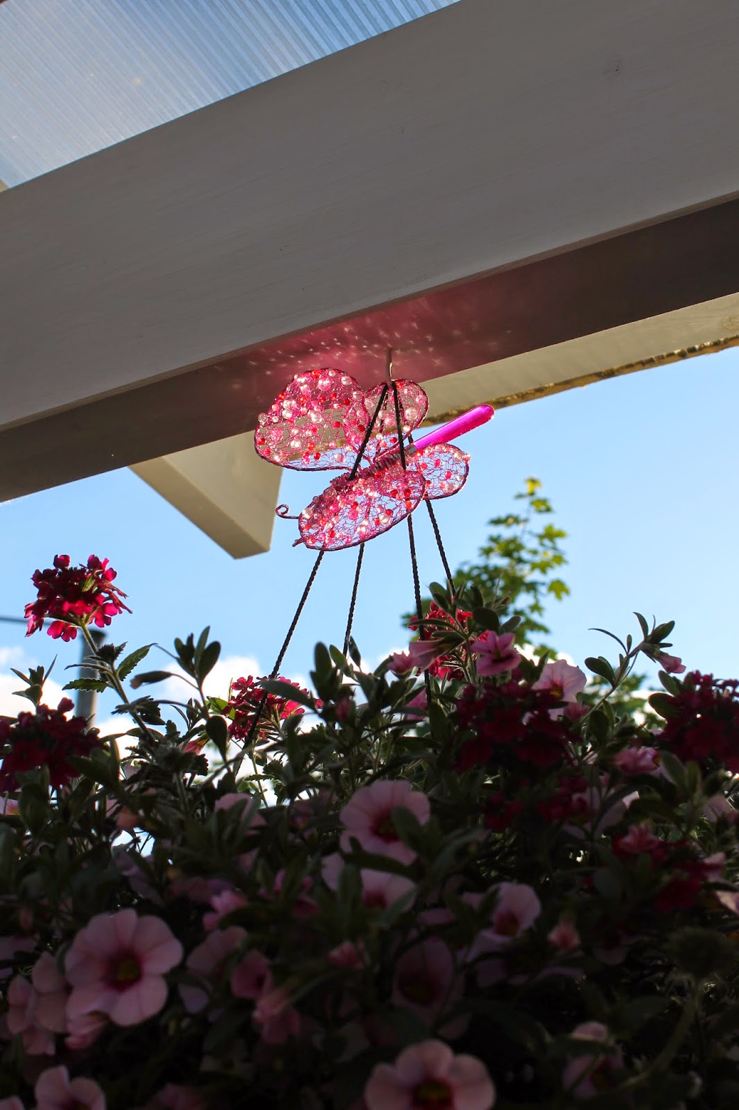 Piti vielä tuota lusikkaperhostakin kuvata, kun aurinko paisteellaan sai sen niin kauniisti kimmeltämään. Agrimarketin muhkeat amppelit ja nuo perhoset ilahduttavat loistollaan joka päivä!