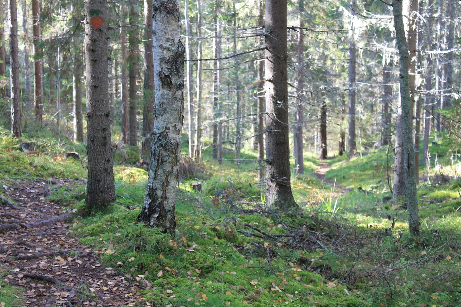 Yhdeksännellä rastilla näkyi todella vanhaa kuusikkoa, kuten vihkonenkin tiesi kertoa.