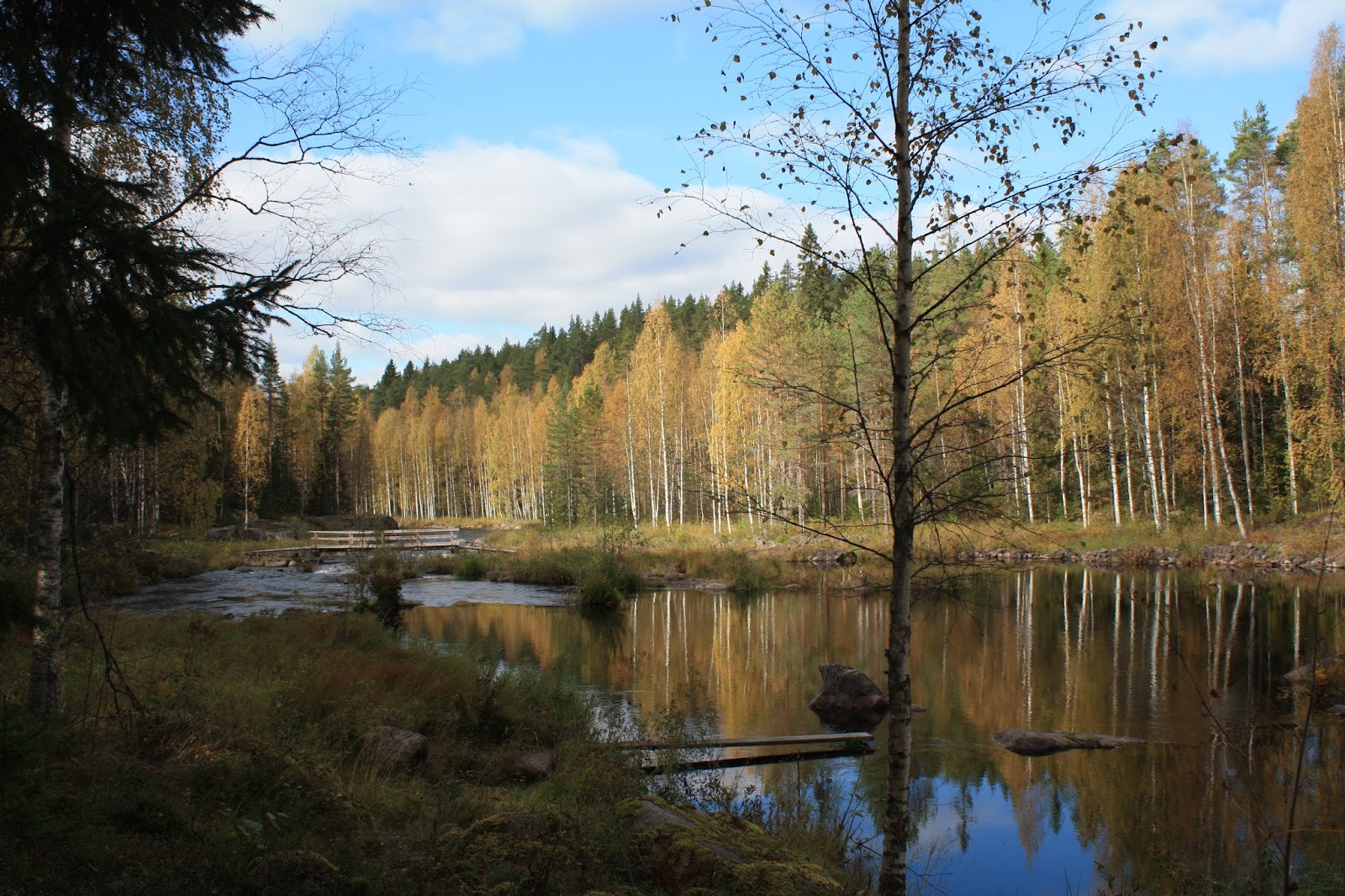 Matkan varrella ihmettelimme syksyn etenemistä. Ruska ei tänä vuonna yllä parhaimpiinsa, sillä osa puista oli jo lehdettömiä ja maisema monin paikoin masentavan ankean ruskea. Mutta onneksi kilometrien vaihtuessa toisiksi paikka paikoin pääsimme ihailemaan luonnon maltillisesti maalaamaa syysmaisemaa.