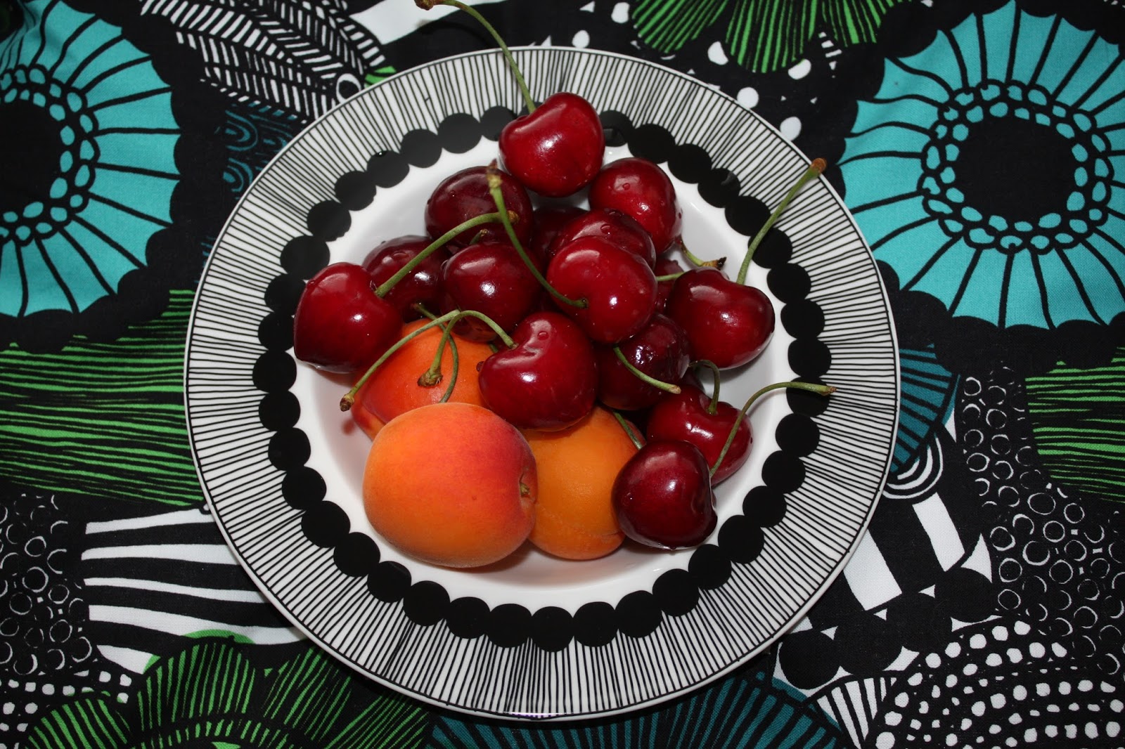 Aamupäivällä ennätimme vielä käydä ruokakaupassa ja sitten olikin jo aika vähän vetää henkeä. Yksi herkullisimmasta kesän merkeistä on kauppoihin ja toreille ilmestyvät kirsikat. Nyt niitä jo saa! Nam!
