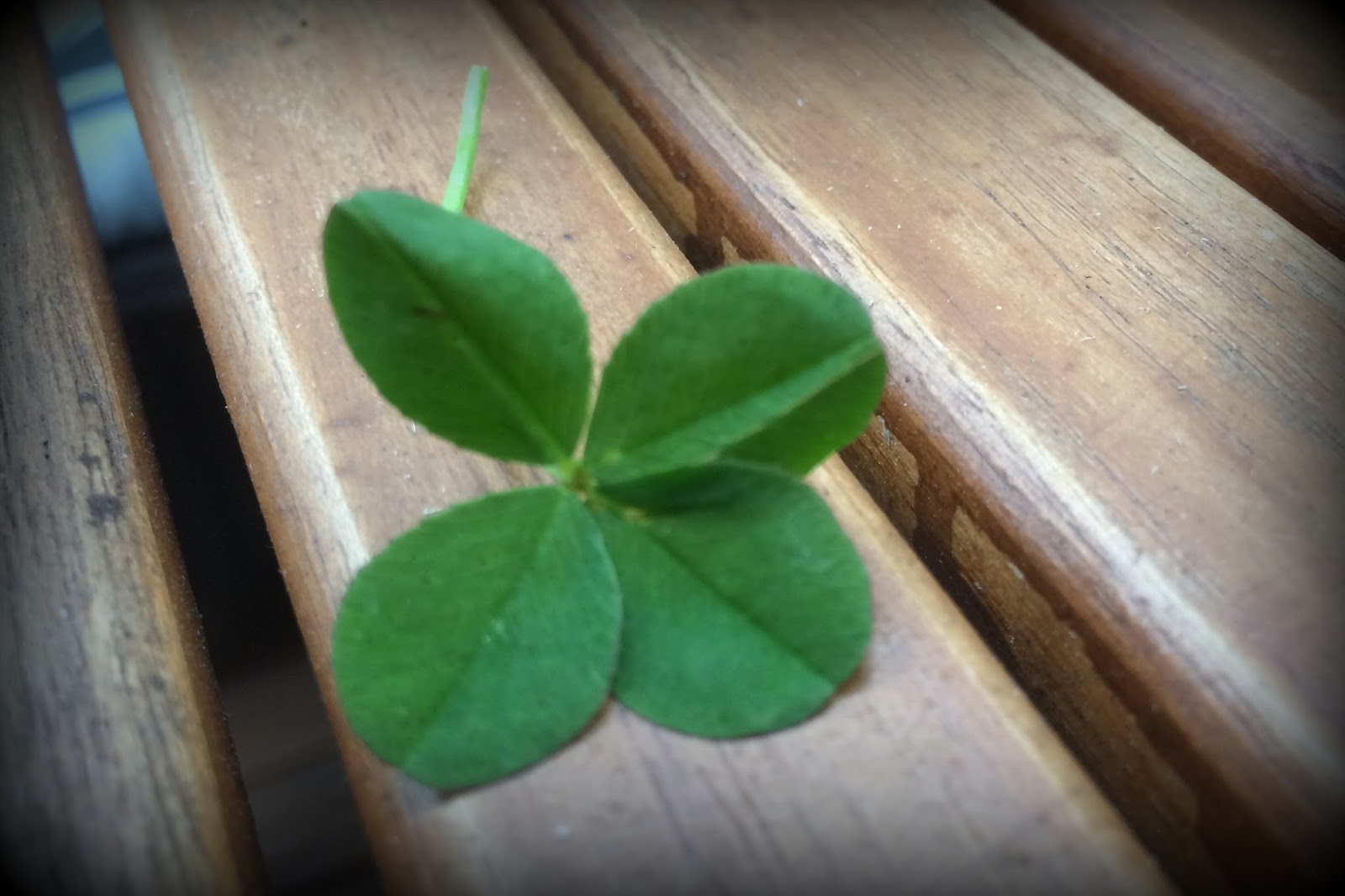 Yhdellä kävelylenkillä löytyi neliapila ja siitä näin epätarkan kuvan kuvasin. Tämänkin karvainen kaverini olisi hotkaissut kitusiinsa heti kun sain lehdykän poimittua ellen olisi ollut valppaana. Hassu tuo koiralapsi, kun luulee että kaikki on syötävää.
