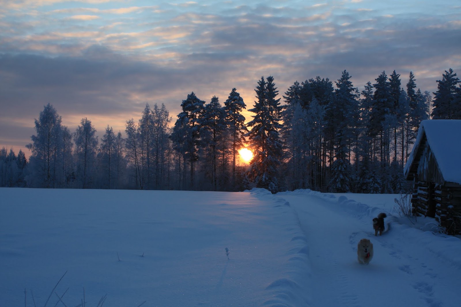 Koirilla oli vauhti päällä, mutta meillä ihmisillä oli verkkaisempi tahti. Äiti oli reissussa, mutta mukaani ulkoilemaan sain kummitytön ja isän. Kuljimme kohti puiden takaa pilkistävää aurinkoa. Otin kohtuuttoman paljon kuvia ja vaikka olen jo kovalla kädellä karsinut, vielä niitä yllin kyllin riittää julkaistavaksikin.