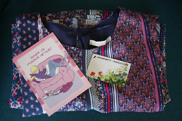 Pääsiäisen aikaan vanhenin taas. Saamani kukkapaljous jo näkyi kuvissa, mutta ystävälliset lähimmäiset muistivat muutenkin. Materialistinen postaus on vähän viivästynyt, mutta nyt täältä pesee! Viivästykselle on kaksi syytä. Ensimmäinen on se, että yksi lahja tuli lahjakorttina ja halusin käyttää sen ennen kuin postaan lahjajutun. Toinen syy on se, että tiesin Jyväskylän siskon lähettäneen onnittelupostia, mutta sitä ei vain kuulunut... Paitsi nyt perjantaina. Pitkään kesti kirjeen matka!